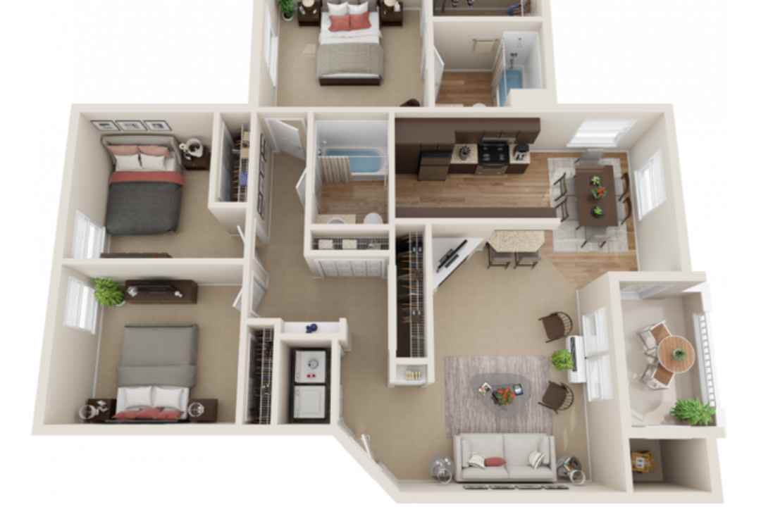 Our Two Bedroom Apartments Both The Abbington Pictured Here And Highland Floorplans Small Apartment Floor Plans Sims House Design Small House Design Plans