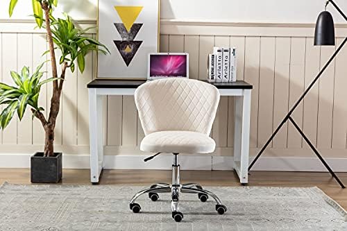 Modern Velvet Armless Office Desk Chair Swivel Tufted Task Chair With Adjustable Height Upholstered Recliner Executive Computer Chair For Home Office And Living Room Beige Home Kitchen